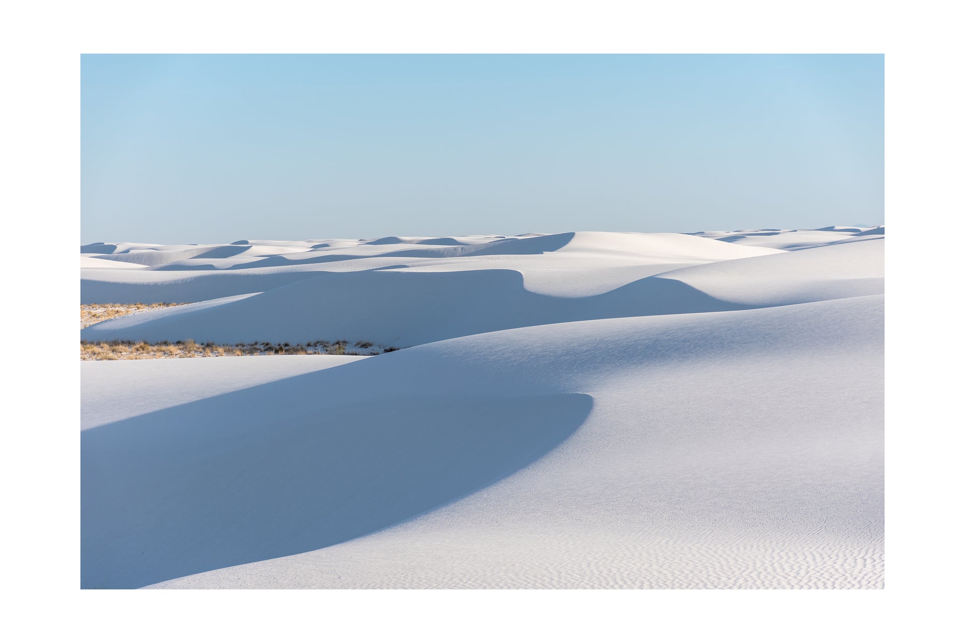 This national park photograph -- "White Waves" -- lets you bring a piece of White Sands National Park home. It features rolling shadowed white sand dunes just before sunset. This photo is a limited edition print, with only 250 available in each of two sizes (12"x8" and 18"x12"). Once they're gone, this print won't be sold again.